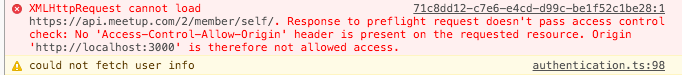 First, Meetup did not allow me to use localhost as a redirect url. As webpack's dev server runs on localhost:3000