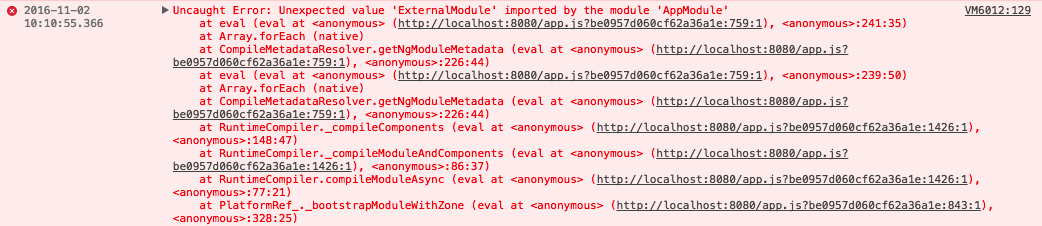 VM6012:129 Uncaught Error: Unexpected value 'ExternalModule' imported by the module 'AppModule'