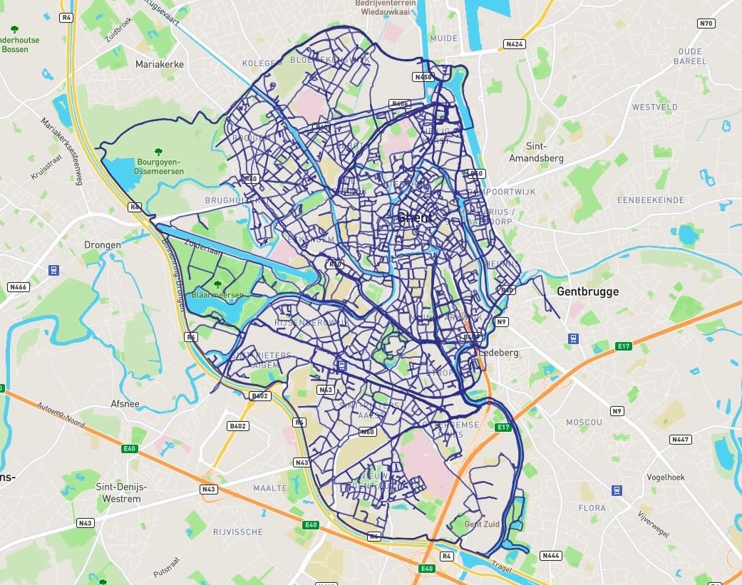 However, due to the non-grid layout of Ghent's street plan, achieving complete coverage proved to be a challenging task. As a result, I typically created hand-drawn routes, covering a small part of the city, for each run shortly before embarking on.